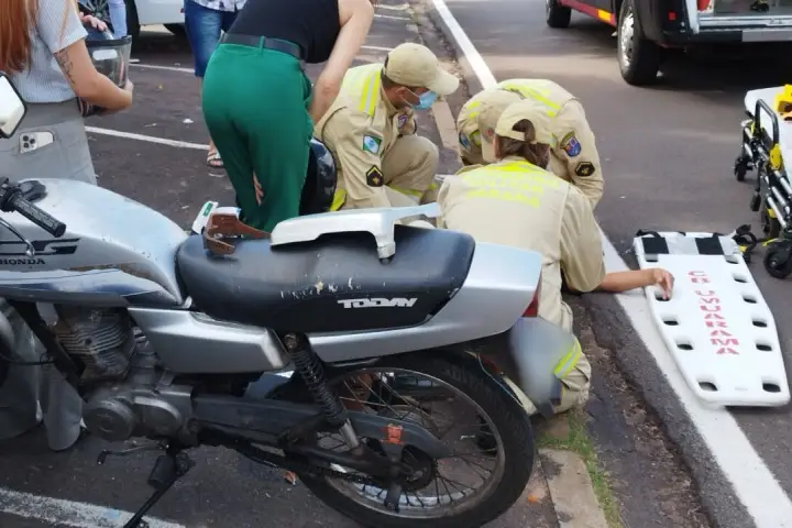 Uma condutora de uma motocicleta Honda CG, de 23 anos, ficou ferida, na tarde desta terça-feira (5), após uma colisão com uma Ford Belina na avenida Londrina, nas proximidades da Copel, em Umuarama. Segundo testemunhas, a vítima chegou a sofrer um desmaio após o acidente.