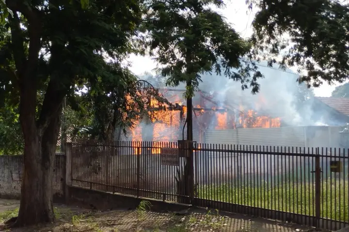 O Corpo de Bombeiros está combatendo um incêndio residencial na rua Ouro Preto, na tarde desta terça-feira (5), no Jardim Panorama.