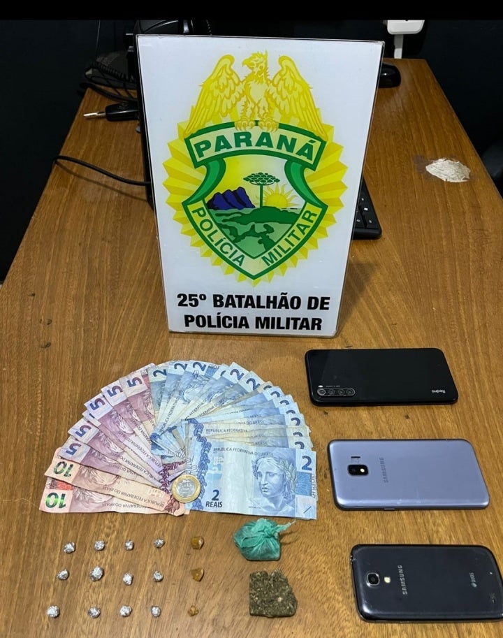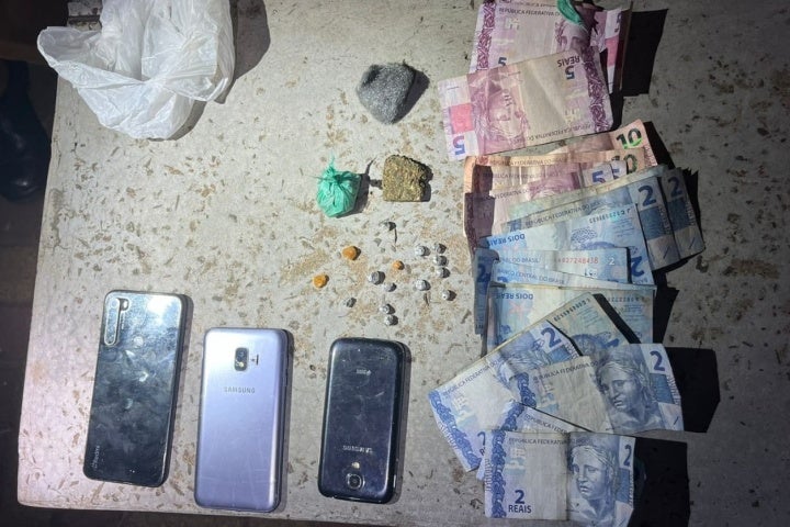A situação aconteceu por volta da 21h45. Uma equipe em patrulhamento reparou um grupo de pessoas aglomeradas no local e, ao se aproximar para abordar as pessoas, todas elas fugiram, deixando o autor para trás. Em revista pessoal, foram encontradas as notas diversas no bolso do homem, além das pedras de crack envoltas em papel alumínio e duas porções de maconha.