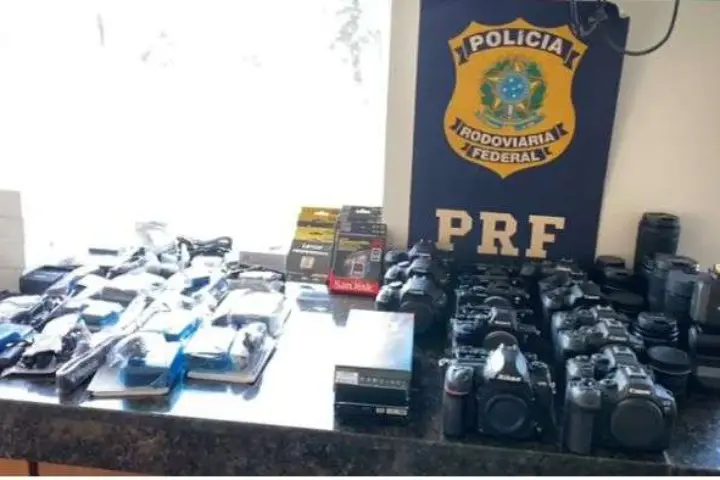 Ao ser questionado sobre o conteúdo, o condutor informou que eram mercadorias estrangeiras. A inspeção mais detalhada revelou eletrônicos novos, incluindo câmeras, lentes fotográficas, computadores, tablets, cartões de memória, acessórios e bebidas, todos sem desembaraço aduaneiro.