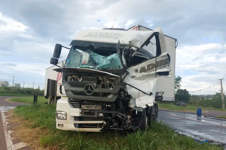 Um condutor ficou ferido após se envolver em uma colisão entre duas carretas na tarde de quarta-feira (6), por volta das 17h20, na PR-323, em Cianorte. A equipe do Corpo de Bombeiros do município havia sido acionada para atender uma ocorrência entre duas motocicletas, mas durante o descolamento deparou-se com o acidente entre as carretas no trevo de acesso ao Cianortinho.