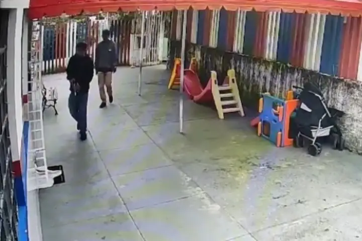 Câmeras de monitoramento registraram o momento em que dois homens em posse de uma arma de fogo invadiram uma creche em Colombo, na Região Metropolitana de Curitiba (RMC) nesta quarta-feira (6). As imagens dos suspeitos foram divulgadas pela Polícia Civil (assista abaixo).