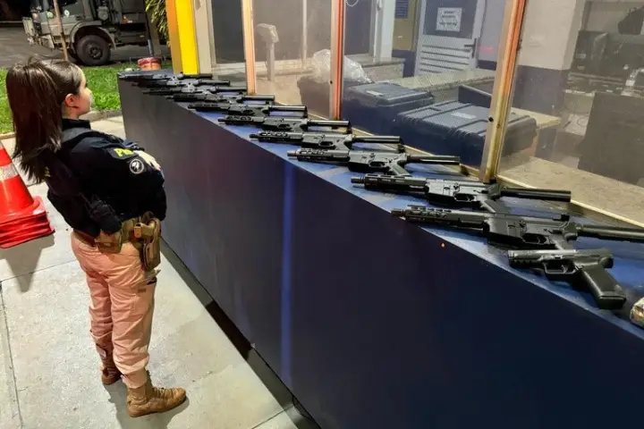A Polícia Rodoviária Federal (PRF) apreendeu 10 fuzis calibre 5.56, 19 quilos de cocaína, e uma pistola 9 mm na manhã desta sexta-feira (8) em Santa Terezinha de Itaipu, que fica a 20 quilômetros de Foz do Iguaçu. A droga estava escondida em um caminhão.