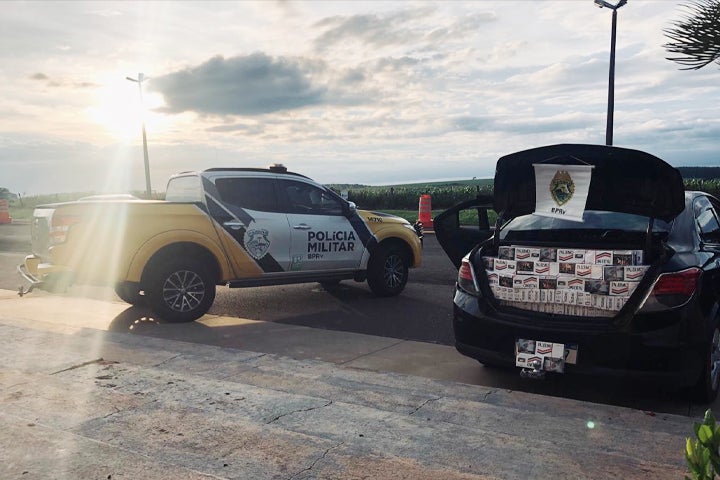 Durante vistoria no automóvel, os policiais viram que eram transportadas cerca de 20 caixas de cigarros da marca Palermo – o que equivale a 1 mil pacotes. A mercadoria é contrabandeada do Paraguai.