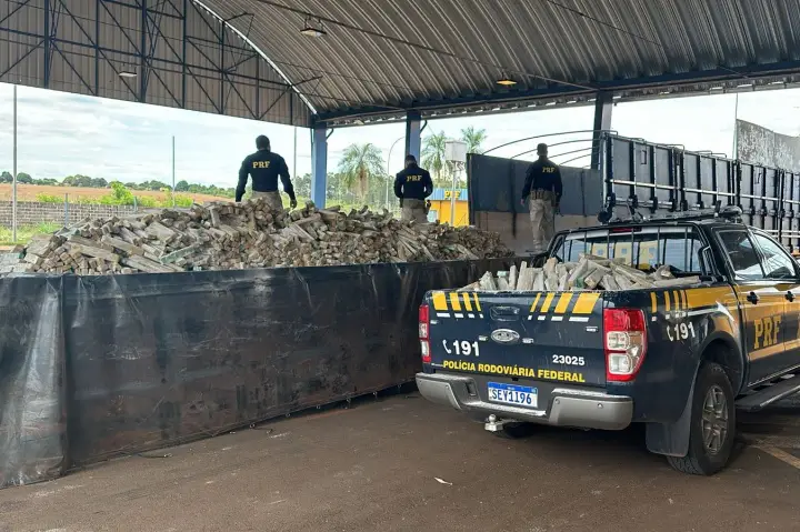 A Polícia Rodoviária Federal (PRF) apreendeu, na manhã desta sexta-feira (8), uma grande quantidade de maconha escondida dentro do assoalho falso de uma carreta abordada em Mercedes (região Oeste).