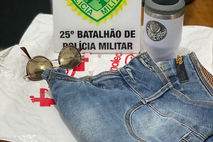Após as informações, a equipe da PM policial realizou diligências e localizou uma mulher com características semelhantes. Durante a abordagem, foi encontrada em sua mochila uma sacola branca contendo itens reconhecidos pela vítima como os furtados.