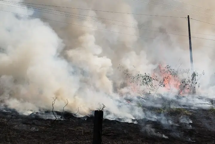 Um incêndio ambiental de grandes proporções atingiu uma área de pastagem localizada entre as cidades de Umuarama e Cruzeiro do Oeste. A situação foi comunicada ao Corpo de Bombeiros pouco antes das 15h, na localidade chamada Estrada Guarani.