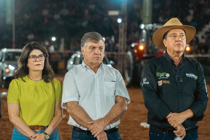 O prefeito Celso Pozzobom e a primeira-dama Dulce Barreiros Pozzobom prestigiaram o espetáculo de abertura do rodeio da 49ª Exposição Agropecuária, Comercial e Industrial de Umuarama/22ª Feira Internacional, na noite da última quarta-feira (13), no Parque de Exposições Dario Pimenta da Nóbrega.
