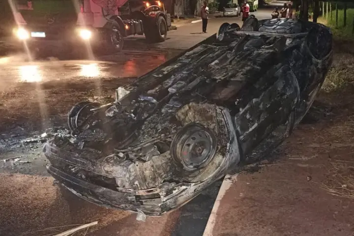 A PM foi até o local por volta das 2h30. No endereço, os policiais encontraram o automóvel já com as quatro rodas para cima e completamente consumido pelas chamas. O fogo foi controlado por populares junto com um caminhão pipa da prefeitura.