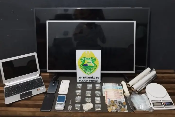 Além disso, também foram encontradas duas balanças de precisão, 2 rolos de papel filme plástico, 2 rolos de papel alumínio, 2 lâminas gilette com resquícios da droga, uma faca também com resquícios de substância não identificada, e dois celulares. Na casa também havia R$ 305 em notas diversas e R$ 26 em moedas.