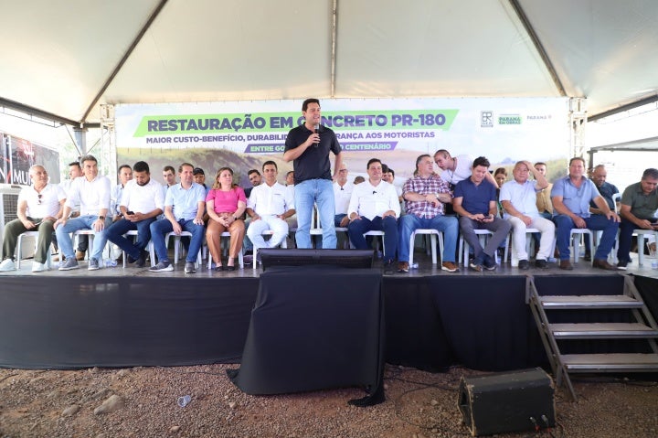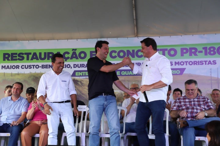 “Esta rodovia é um entroncamento que liga várias cidades do Estado e várias regiões, conectando o Oeste com o Noroeste. A estrutura dela é antiga, as pistas não dão conta do fluxo de veículos e ela acabou defasada. Faremos uma pavimentação nova, com uma tecnologia que é usada nas principais rodovias do mundo, pensando no longo prazo e no crescimento futuro da região”, afirmou Ratinho Junior.