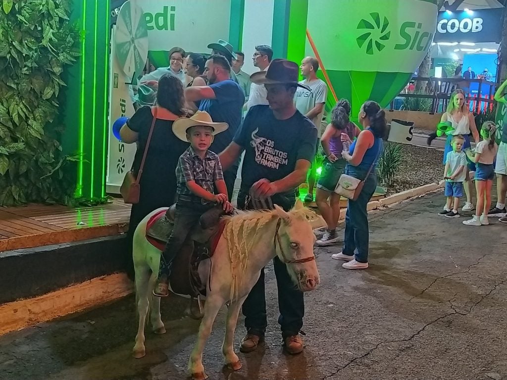 Quem trouxe a novidade para a Expo Umuarama, pelo segundo ano consecutivo, foi o Rancho Let’s Go, de Jataizinho, norte do Paraná. A empresa trouxe 22 animais. Além dos cavalinhos, também estão expostos boizinhos, cabritinhos e ovelhinhas.