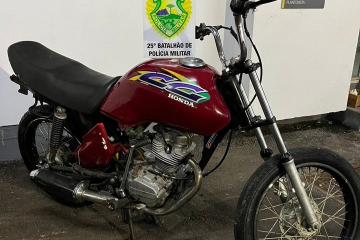 Uma vistoria mais aprofundada ao veículo constatou que ele também estava com a numeração de chassi suprimida. A moto foi então apreendida e entregue no pátio do 25º Batalhão (BPM).