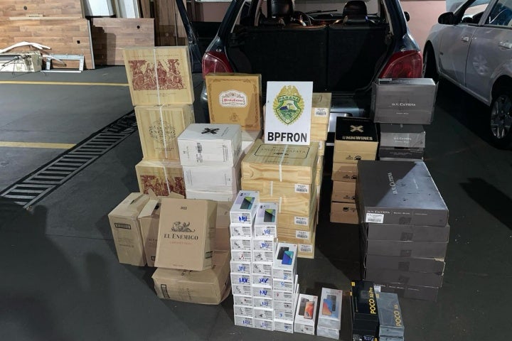 No carro, os militares encontraram cerca de R$ 180 mil em produtos do Paraguai, sendo eletrônicos, vinhos e cigarros.