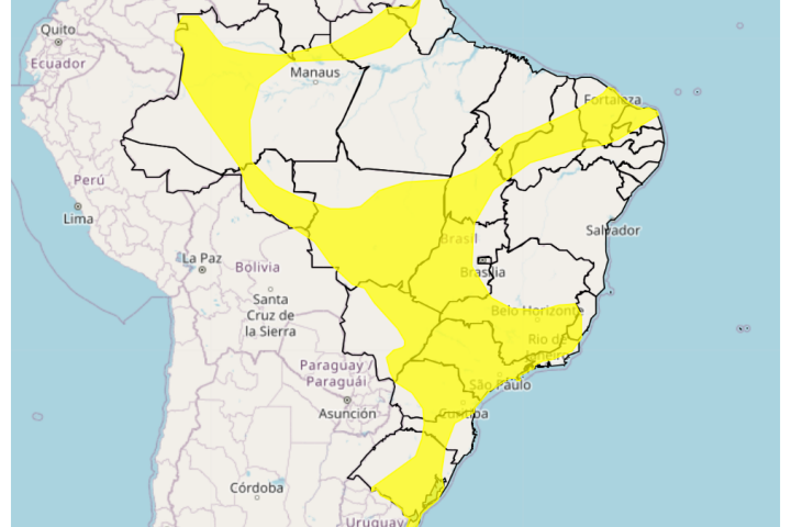 Uma extensa área do Brasil incluindo Umuarama, pode ser afetada por chuvas intensas alertou o Instituto Nacional de Meteorologia (Inmet). O aviso começou às 10h10 desta segunda-feira (18) e se estenderá até as 10h de terça-feira (19).