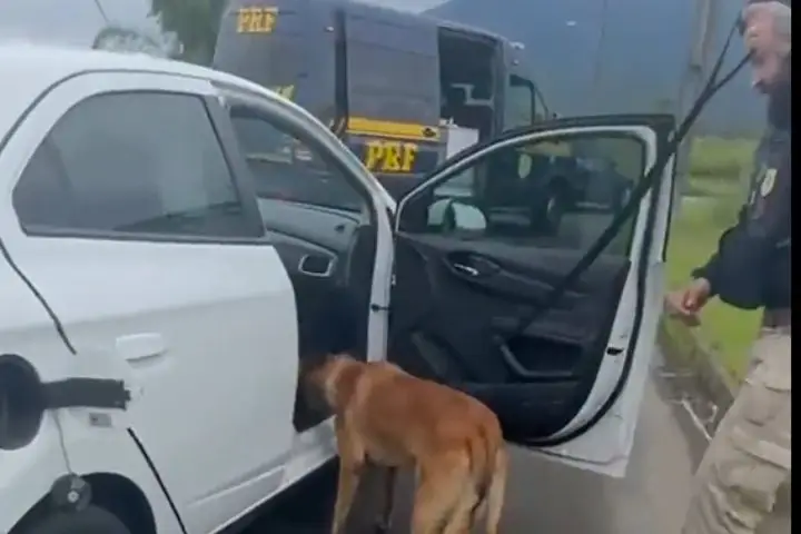 O fugitivo ainda tentou se esconder na vegetação, mas foi localizado e preso. Durante fiscalização no automóvel, os policiais descobriram, com a ajuda de cães, 53 quilos de cocaína escondidos no piso do veículo. O entorpecente estava dividido em 50 tabletes.