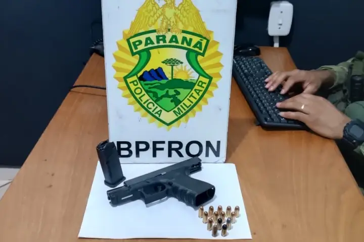 O condutor de uma caminhonete VW Amarok, de 36 anos, foi preso pelo BPFron (Batalhão de Polícia de Fronteira), na manhã desta quarta-feira (20), ao ser flagrado em posse de uma pistola Glock calibre .380 na PR-323, em Perobal.