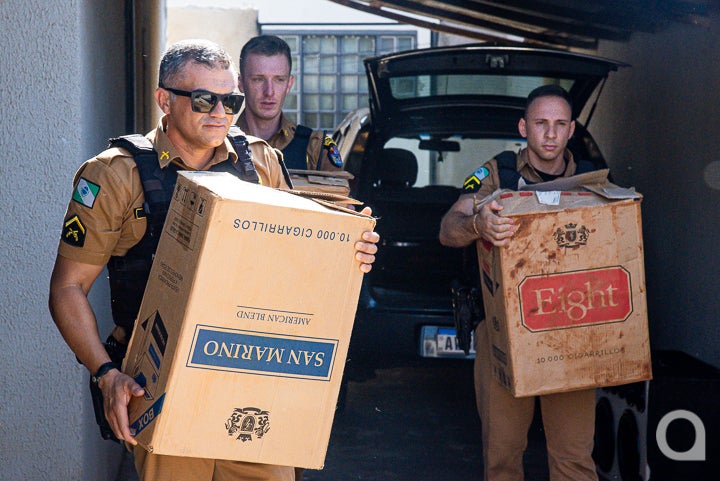 Além dos cigarros, a PM também apreendeu dinheiro, incluindo notas falsas, máquinas de cartão e celulares. O homem foi preso em flagrante e levado para o 25º Batalhão de Polícia Militar e, posteriormente, para a Delegacia da Polícia Federal em Guaíra. Os cigarros foram encaminhados para a Receita Federal.
