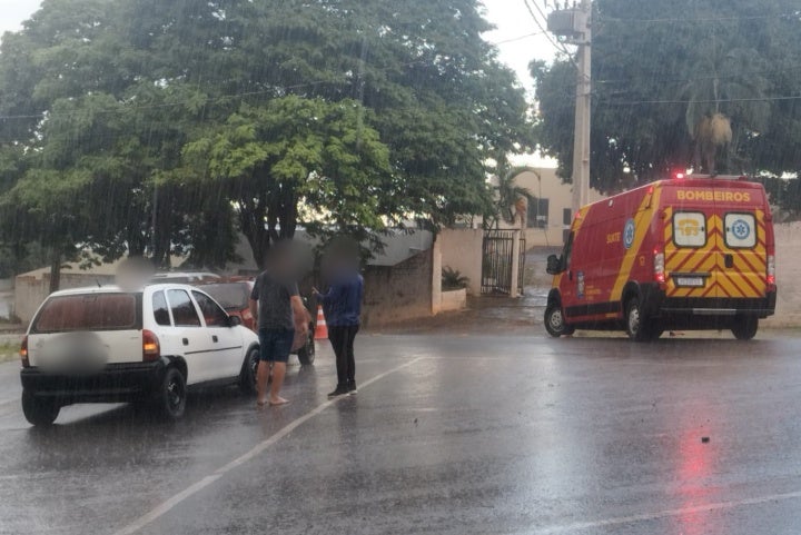 Mulher fica ferida após colisão entre carro e moto no bairro San Remo