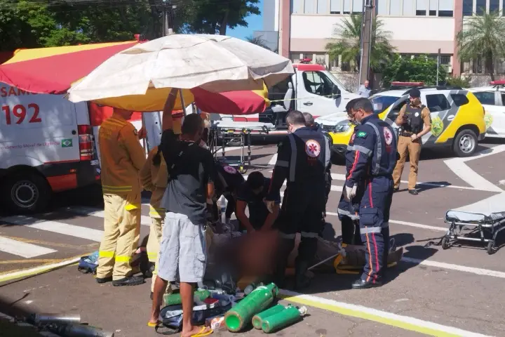 Completaram duas hora de esforços de reanimação dos profissionais do Samu (Serviço de Atendimento Móvel de Urgência) em conjunto com bombeiros do Siate (Serviço Integrado de Atendimento ao Trauma em Emergência), que buscam reverter a parada cardiorrespiratória do ciclista que caiu em frente ao Fórum de Umuarama, na manhã desta sexta-feira (22).