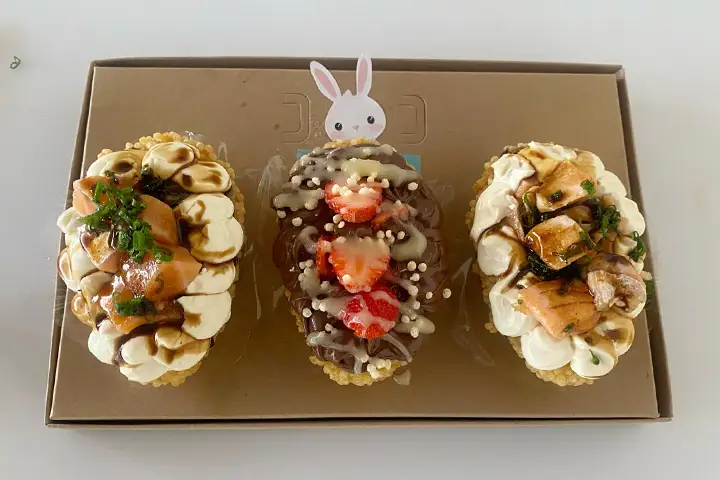 A umuaramense e sushiwoman Ana Paula dos Santos Gonçalves, de 38 anos, tem 12 anos de experiência em culinária oriental e para a Páscoa deste ano trouxe uma opção inovadora: o Trio Happy Easter, composto por ovos hot nos sabores salmão com Philadelphia, salmão grelhado e sensação (morango e Nutella).