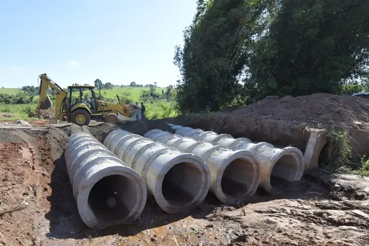 “Já vimos o córrego passar por cima da estrada com mais de um metro de água. É um volume muito grande, que chega a impedir a passagem dos moradores e danifica a estrada constantemente”, lembrou o diretor de Obras da Prefeitura, Hélio da Silva Junior. Por isso, a Secretaria de Obras está implantando uma rede com quatro linhas de tubos de 1,5 m de diâmetro.
