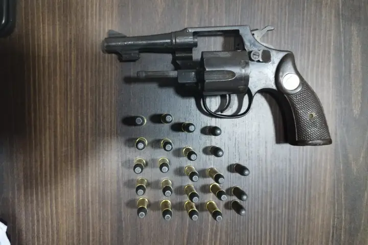 Na revista pessoal, os policiais encontraram um revólver calibre .32 engatilhado e com 6 munições intactas no bolso do autor. Além disso, no veículo também foram encontradas 17 munições intactas do mesmo calibre, dentro de pacotes.