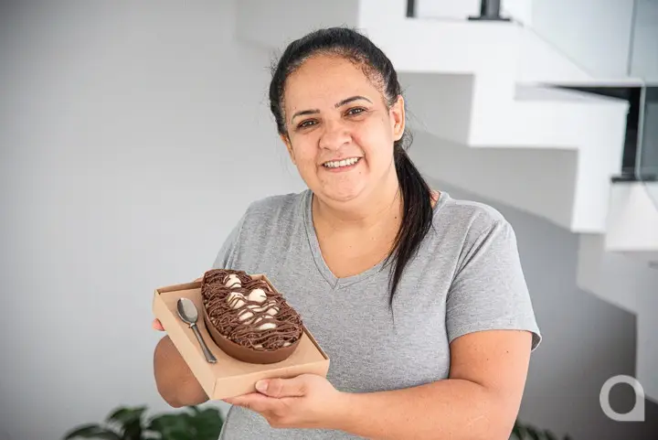 Ela sempre teve afinidade com a culinária, especialmente com a arte de criar bolos, embora inicialmente só soubesse prepará-los de forma caseira. Por isso, buscou a capacitação no Senac para aprimorar suas habilidades e aprender técnicas profissionais de estruturação de bolos.