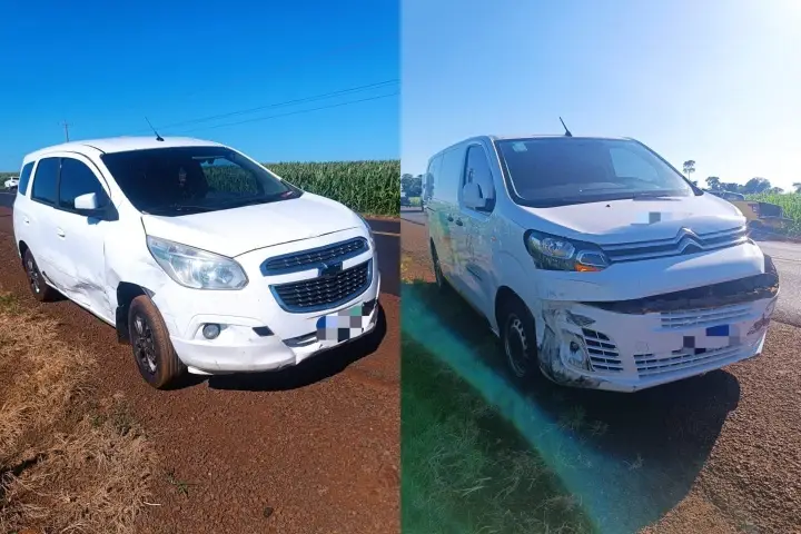 Um furgão Citroën Jumpy com placas de Umuarama se envolveu em uma colisão com outro furgão e um automóvel na PR-323, em Assis Chateaubriand, no início da manhã desta terça-feira (26). De acordo com a Polícia Rodoviária Estadual (PRE), os três veículos colidiram lateralmente.