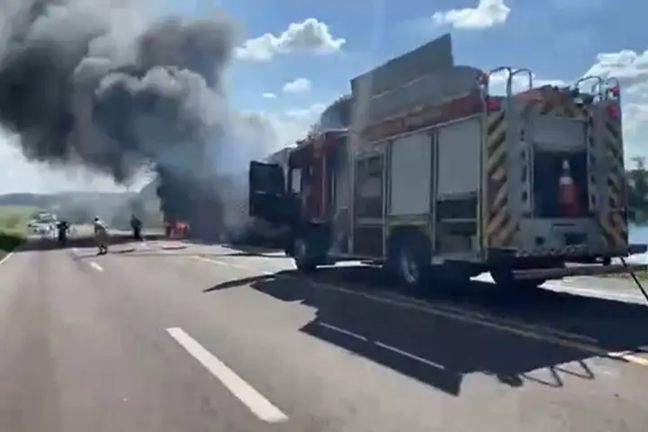 O Corpo de Bombeiros foi mobilizado até o local e fez o combate às chamas, que foram extintas, porém o veículo foi completamente destruído. O veículo foi estacionado na margem da rodovia, o que indica que o condutor possivelmente percebeu que havia algo errado e teve tempo de desembarcar e colocar o caminhão em um local mais adequado antes que o fogo saísse do controle.