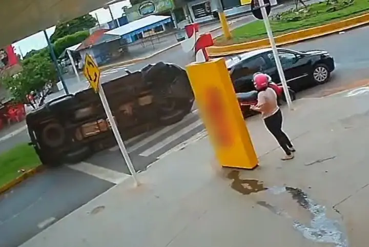 No cruzamento das avenidas Juscelino Kubstchek e Brasil, área central da cidade, o motorista colidiu na traseira de um automóvel VW/Gol, cor preta. Com o impacto, a caminhonete tombou. O Gol foi arremessado sobre uma Biz e, por pouco, a motociclista não foi atingida.