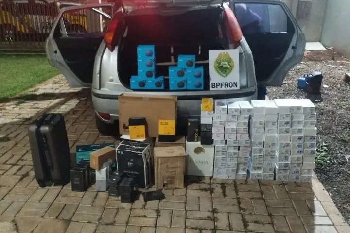 De acordo com o BPFron, a abordagem aconteceu por volta das 18h30. Policiais avistaram o carro em alta velocidade e, ao abordar e vistoriar o veículo, encontraram diversas mercadorias, como eletrônicos, itens de perfumaria e bebidas que estavam sem o desembaraço aduaneiro.