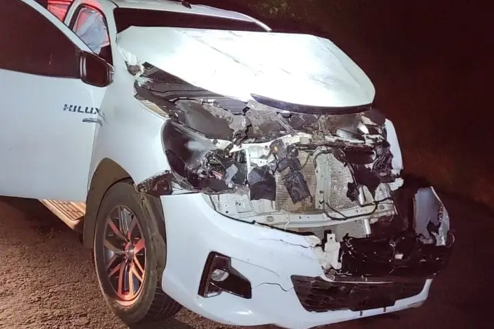 A Polícia Militar foi acionada pelo Centro de Operações Policiais Militares (Copom) para verificar uma caminhonete abandonada na BR – 487, próxima ao distrito de Serra dos Dourados, em Umuarama. No local foi encontrada uma caminhonete Hilux com a parte frontal danificada devido a uma colisão.