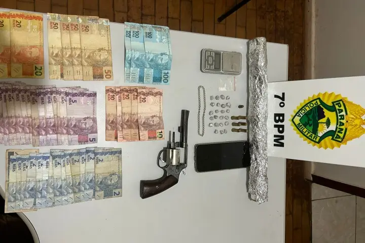 A Polícia Militar (PM) apreendeu um revólver calibre .38 e porções de cocaína e crack em uma residência de Mariluz, na noite desta terça-feira (2). De acordo com a corporação, a apreensão aconteceu durante a verificação envolvendo a venda de uma motocicleta tomada em um roubo no município de Cianorte.
