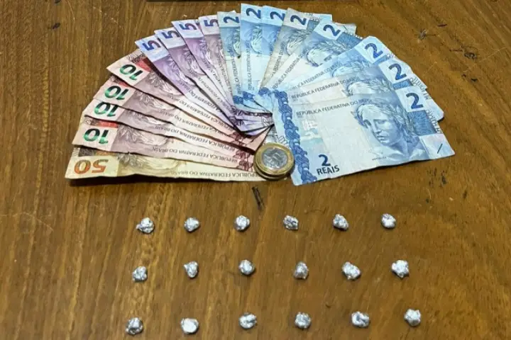 De acordo com a PM, a equipe estava em patrulhamento pela região, quando, por volta das 19h40, abordaram o suspeito. Em revista pessoal os militares encontraram o dinheiro e as porções da droga, que totalizavam 2,6 gramas.