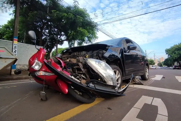 A condutora de uma Honda Biz, de 29 anos, ficou ferida ao ser atingida pela condutora de um Citroën C3 no cruzamento da avenida Apucarana com a rua Bahia, no Centro de Umuarama, na manhã desta sexta-feira (5).