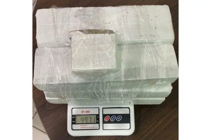 Os agentes realizaram buscas e encontraram o veículo suspeito, abordando o condutor. Durante a verificação ao automóvel foram localizados seis tabletes de maconha, pesando aproximadamente cinco quilos.