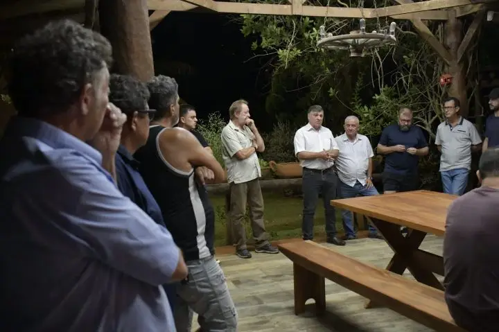 Ao lado do diretor de Obras do município, Hélio da Silva Junior, e da diretora de Arrecadação e Fiscalização, Gislaine Vieira de Marins, o prefeito colocou a proposta de dividir os custos entre o município e os donos de sítios e chácaras da estrada e a aprovação foi praticamente unânime.