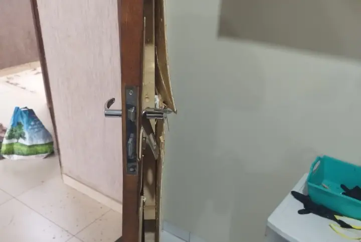 Verificou-se também que uma porta, que dá acesso ao salão de beleza conjugado com a residência, tinha sido arrombada. Os móveis estavam todos revirados. Os policiais realizaram contato com a vítima (homem de 34 anos). Ele inicialmente não notou o desaparecimento de nenhum objeto. Em outra porta, que dá acesso à casa, foram notadas marcas de arrombamento.