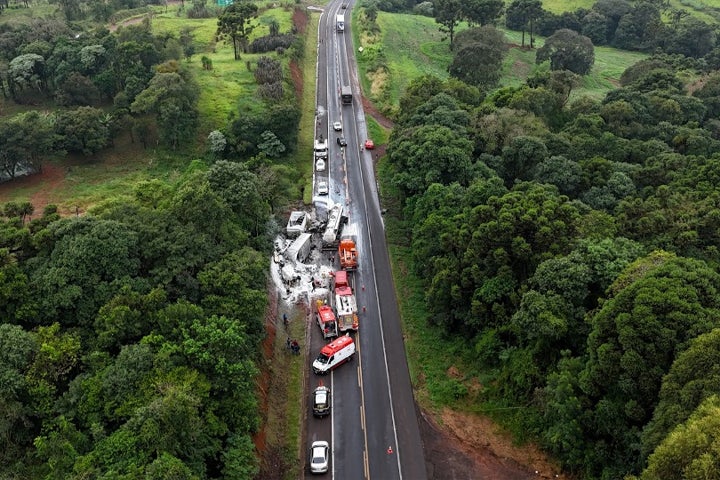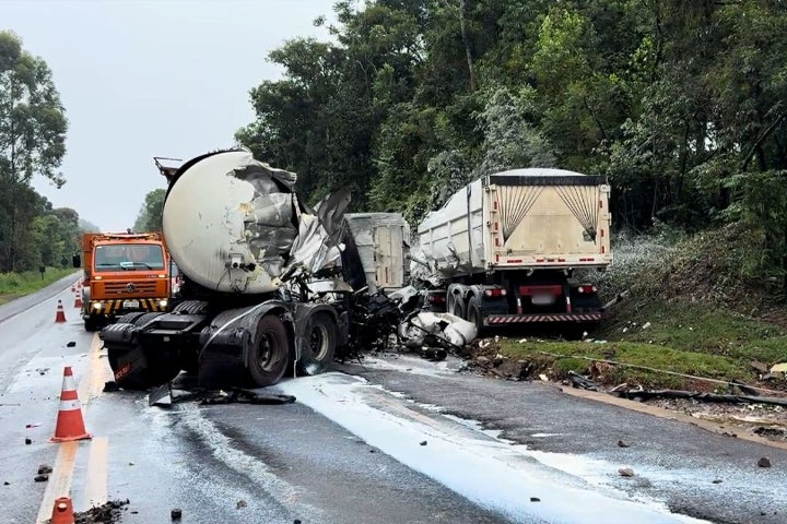 O motorista do veículo carregado com leite, de 51 anos e residente em Piraí do Sul, faleceu no local do acidente. O tráfego está fluindo em meia pista.