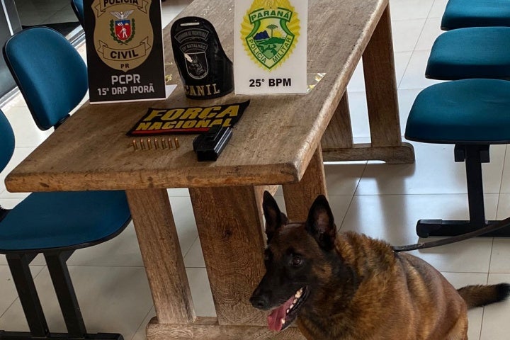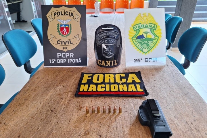 Foram apreendidos um coldre, sete munições calibre 9mm e uma pessoa foi presa em flagrante pela posse dos objetos. Ela foi encaminhada ao departamento Penitenciário de Iporã.