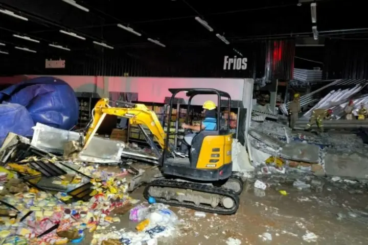 A laje de um supermercado que sustentava cinco caixas d’água desabou quando o estabelecimento inaugurou para o público. Ao todo, três funcionárias perderam a vida e outras pessoas 12 ficaram feridas.