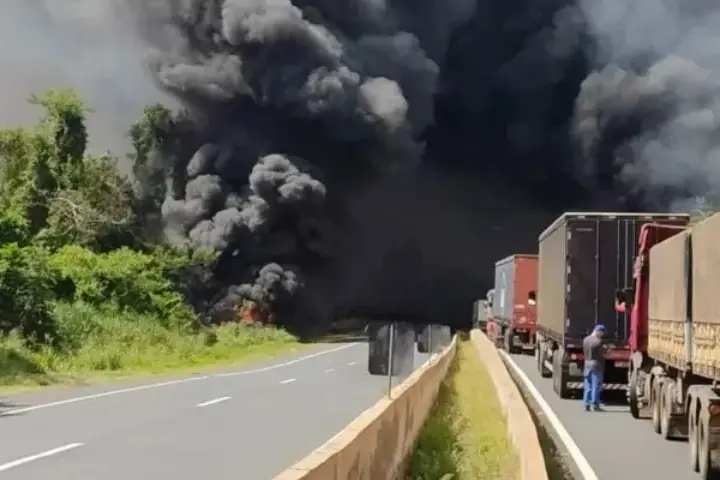 Um caminhão que transportava combustível tombou e causou um incêndio, na manhã desta quarta-feira (10), no quilômetro 437 da BR-376, em Tibagi. Devido ao acidente, foi realizado um bloqueio em ambos os sentidos da rodovia que, segundo a Polícia Rodoviária Federal (PRF), ainda não há previsão de liberação.