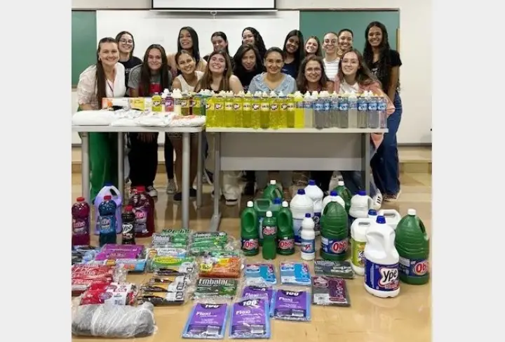 Ao todo foram arrecadados 236 litros de detergente, 30 litros de água sanitária, 15 litros de desinfetante, 40 pacotes de sacos de lixo, além de luvas, toucas e aventais descartáveis.