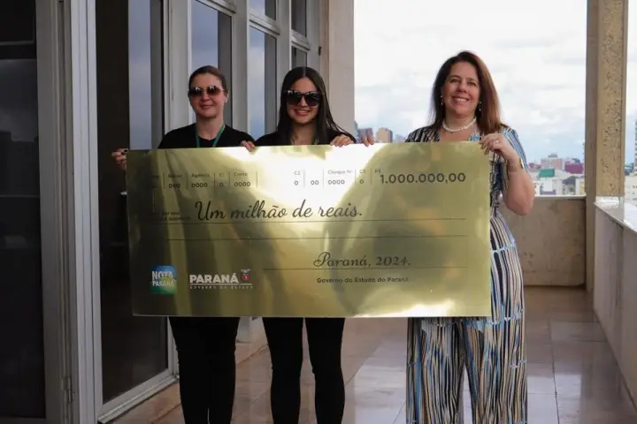 A 48º milionária do Nota Paraná, programa vinculado à Secretaria da Fazenda, recebeu nesta sexta-feira (12) o prêmio máximo de R$ 1 milhão referente ao sorteio do mês de abril. A entrega foi feita presencialmente pela diretora-geral da Pasta, Marcia do Valle, em Curitiba.