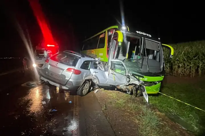 De acordo com a Polícia Rodoviária Estadual (PRE), o acidente aconteceu por volta das 18h30, durante chuva. O carro, com placas de Pinhais, seguia pela rodovia no sentido Terra Roxa à Palotina quando, ao atingir o quilômetro 592 mais 300 metros colidiu frontalmente com o ônibus, que seguia no sentido contrário.