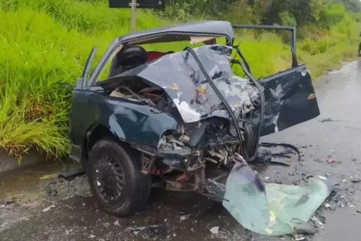 Um veículo Fiat Argo colidiu frontalmente com um Chevolet Monza em um trecho de pista simples, onde ultrapassagens são proibidas, na tarde deste domingo (14) na BR-277, em Palmeira, nos Campos Gerais do Paraná. Os três ocupantes do Monza – um casal e uma criança de três anos – perderam a vida no impacto.