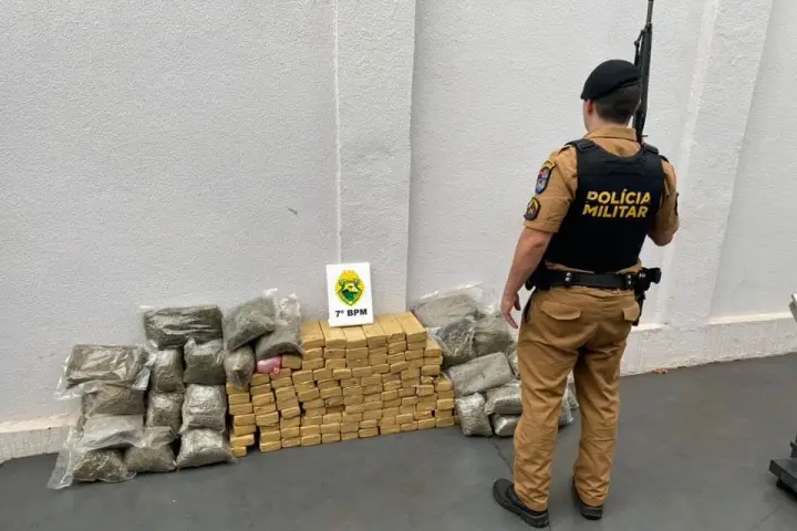 A Polícia Militar (PM) apreendeu 101 quilos de maconha e 37,5 quilos de skunk que estavam dentro de um veículo capotado às margens da PR-082, em Nova Olímpia, nesta terça-feira (16). O condutor do carro, de 21 anos, também foi preso.