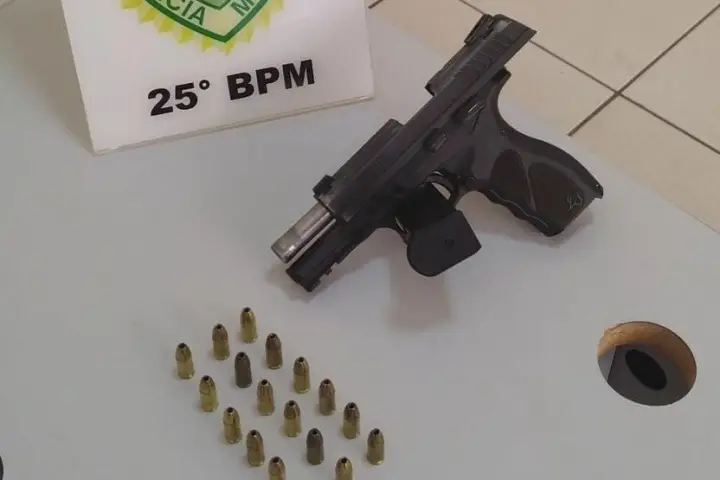 A abordagem aconteceu às 11h17. Uma equipe Radiopatrulha (RPA) abordou o motorista de um VW Bora e, em verificação ao veículo, foi encontrado uma pistola Taurus TH9 com 18 munições da marca CBC.