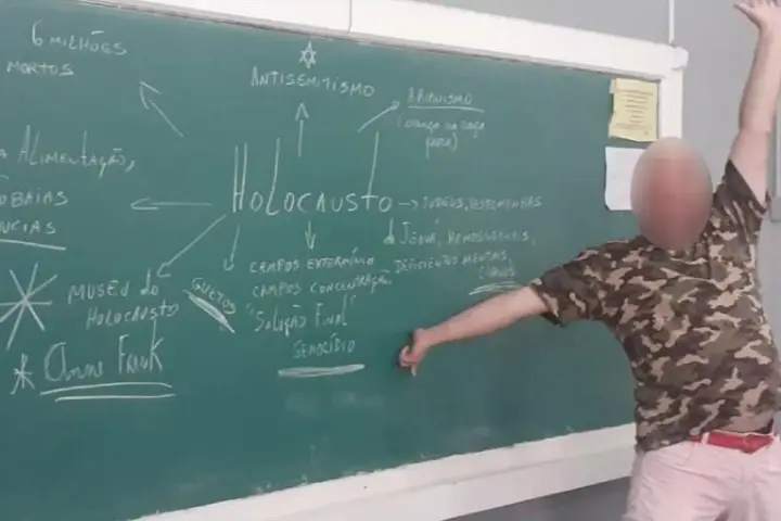 A Polícia Civil também determinou o afastamento temporário do professor. “Tendo em vista que ele compartilha esse conteúdo pelas redes sociais e também poderia compartilhar na sala de aula, foi solicitado o afastamento de suas funções públicas e a proibição de compartilhamento desse tipo de conteúdo, o que foi deferido pelo Poder Judiciário”.